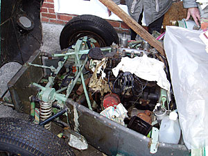THE BEXHILL MUSEUM MK.III ... NOW THE FUN BEGINS!! After a busy few weeks, the Elva-Climax Mk.III destined to be the 'show car' in the refurbished museum has finally arrived in the south and now the project can really start. This car with chassis number 100/56 was one of the last ELVA sports racers built in the town of Bexhill-on-Sea and there is much local enthusiasm and anticipation for the rebuild, particularly as several of the people who helped construct the car in the first place are to be involved. There just cannot be a better way for the town to remember the ELVA legacy and for future generations to learn and enjoy. I hope you will watch this story unfold and no doubt there will be much to tell as the restoration progresses. Known so far is that this car, built in 1958, was purchased in December 1971 by John Raddings who lives near Hull in the north-east of the UK and he slowly worked on the car over the next 35+ years. It had previously been bought by a local business family for their 17 year old son to use as a road car, having it road registered with the number 'YWF 542K'. It was obviously totally unsuitable, hence the sale to John, but amazingly the car was granted an 'MOT' certificate of road worthiness in September 1971. Earlier history is to be researched, but meanwhile please enjoy some pictures of the car 'as found' and do PLEASE consider offering some help in the way of a donation to the Society of Bexhill Museum funds as there will be much to do. Please read this information about the Museum. Click here for earlier jottings about the Museum and Elva. Roger Dunbar |