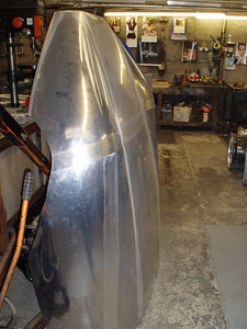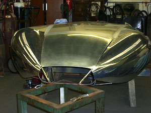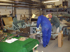 Bexhill Museum Mk.III update The Elva conservation team have been able to complete all the proposed scheduled work that was planned for the first six months of this year, finishing generally by the end of July. However since we have needed to employ other contractors for the paint preparation and finishing of the many components, we have had to fit into their schedules; this has resulted in about two months where we have been unable to proceed further with the rebuild. However, the chassis and all its associated components have now been bead blasted and powder-coated [arranged through two separate companies all based in St. Leonards] and recently transported back to Hastings Sheet Metal, where the chassis is at present undergoing its final fitting out with the duraluminium under-tray and internal aluminium panels. As the damage to the original aluminium panelling was beyond repair, all new sections are being hand made by Alan Jenner, who incidentally made them together with the body for Elva Engineering in 1958. The new body work sections, made in three main parts, is virtually finished, requiring only trimming to size and the fitting of the headlamp nacelles. All main components will be transported to our workshop in Dallington for the commencement of the next stage of the rebuild. We have just received the re-cored radiator so we are only awaiting the polished and part painted magnesium alloy wheels, plus the instruments as part of the extensive rebuild of 100/56 and thus return the car to the original ex. ‘works’ condition. Much of the damage to components, found during the dismantling period was due to the storage of the car, and standing stationary for so long. We were able to find re-manufacturers who were able to recover many of the seized brake cylinders and hydraulics etc. The engine [Coventry Climax FWP] which was purchased with the car, but not fitted; is undergoing a full rebuild to near FWA standard by an experienced Climax engine expert – this work was not within the remit of the Elva Team, due to the lack of in-house machining facilities and sourcing of specialised components. Due to funding restrictions the Climax is being built to road-race rather than a full race specification. It has been decided to leave the aluminium bodywork in an unpainted condition exactly as many were originally supplied to the customer to be raced without further finishing. We have been able to source a treatment for the bare aluminium, as used by Rolls Royce Silver Ghost owners, which allows the surface to be coated by hand, similar to a conventional waxing, but protects the surface from all elements, especially salt laden air and hand marks. The treatment is expected to last over a year, even with outside use. The seat shells purchased with the vehicle, had seat covers supposed to be from the original car, unfortunately upon inspection this was found to be incorrect, and new trimming was needed; local sources were unable to provide this service at a reasonable cost, and this was carried out by Cass Bros from Bromley; the only out sourced supplier not located close to Bexhill . Even the work on renovating the magnesium wheels generously donated by Robin Lackford is being carried out in nearby Ninfield. Our programme for the completion of the project is planned for mid February 2009. This is to run parallel with the opening of the new museum around that time. Note from RAD: Due to time and geographical considerations, I had asked Peter if he would consider being the ‘project manager’ and he has been an absolute gem. His input has been fantastic and we could not have made such amazing progress at minimal cost without his engineering and organisational skills. We have been so fortunate to have found Peter and the wonderfully enthusiastic ex. Elva folk including Len Sayers, Bob Curl, Tony ‘Ant’ Recknall, and of course Alan and Ian Jenner from Hastings Motor Sheet Metal who produce such amazing goodies from their crowded workshop in St. Leonards.