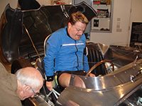 26 November 2009. Opened by Eddie Izzard. While the Elva-Climax Mk.III had been on display for several weeks, the official opening of the enlarged and renovated museum took place on Thursday 26th November 2009 with the ceremony of cutting the ribbon performed by actor and comedian Eddie Izzard. Amazingly, Eddie ran from Eastbourne to Bexhill (around 12 miles), which for him was a mere stroll as he has run over 40 (yes FORTY) marathon races during 2009 on behalf of Comic Relief. The museum was jam packed and after speeches Eddie explored the various displays before making a beeline for the Elva. He genuinely expressed huge interest having spent much of his childhood in Bexhill and of course wanted to get behind the wheel! Len Sayers encouraged Eddie into the cockpit and there was lots of banter and pictures taken as Eddie asked about the car and Elva in general. Needless to say he was delighted to sign our very special team ‘keepsakes’ and eventually we all headed home having imbibed a bottle or two of “Elva Ale” in celebration of a great ‘ELVA’ effort by all concerned. There is no doubt that the display has attracted much attention and will remind future generations of all that was achieved by Elva from the very earliest days in Bexhill. As museum CEO Peter Fairhurst wrote... Three unique vehicles are sitting proudly on their plinths in the new ‘Motoring’ gallery; the replica 1902 Serpollet, steam powered car, the 1993 Volta battery powered record breaking electric car and, as visitors enter the gallery, directly in front of them they see the ELVA. It is interesting to stand out of sight when people enter and hear their remarks, the most common of which is a single ‘WOW’. Describing the car in a few words would be impossible; it could be described as ‘stunningly beautiful’ but that would not do justice to the hard work, skill and craftsmanship that turned the run-down and derelict wreck that arrived at Dallington, in 2007, into the glittering, totally refurbished sports/racing car that causes grown men to utter the afore-mentioned ‘WOW’. If the museum can now arrange for the collection of 50p for each time people say “WOW” they will make a fortune! Better still, make time to visit Bexhill and of course the museum, but do make sure you have a 50p coin in your pocket!. Click to view a photo/slideshow.Photos by Roger Dunbar and Robin Thatcher And here's some other links to the story... |