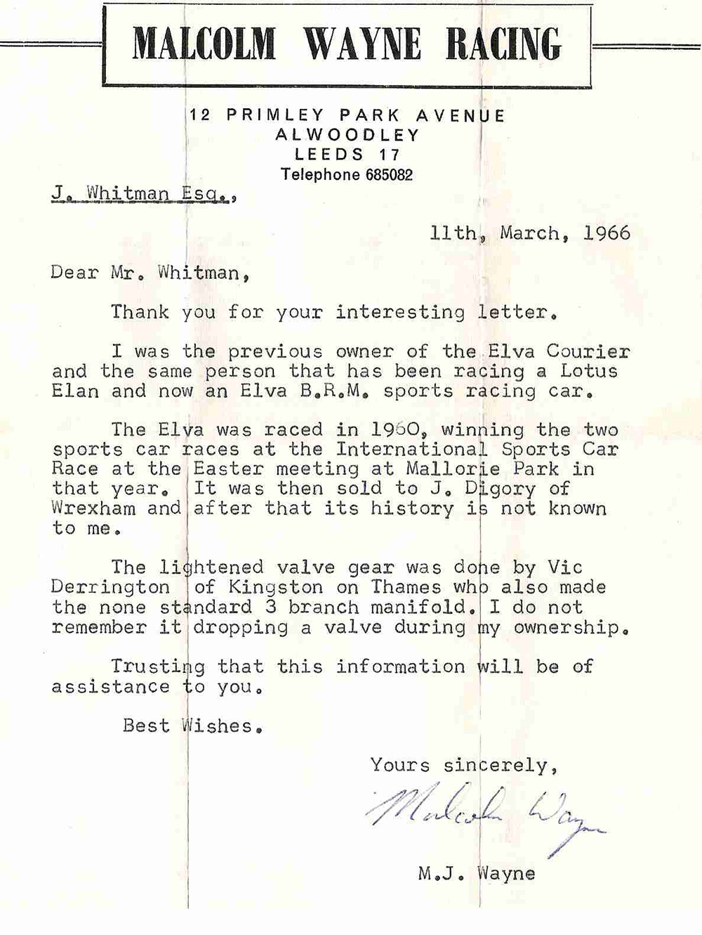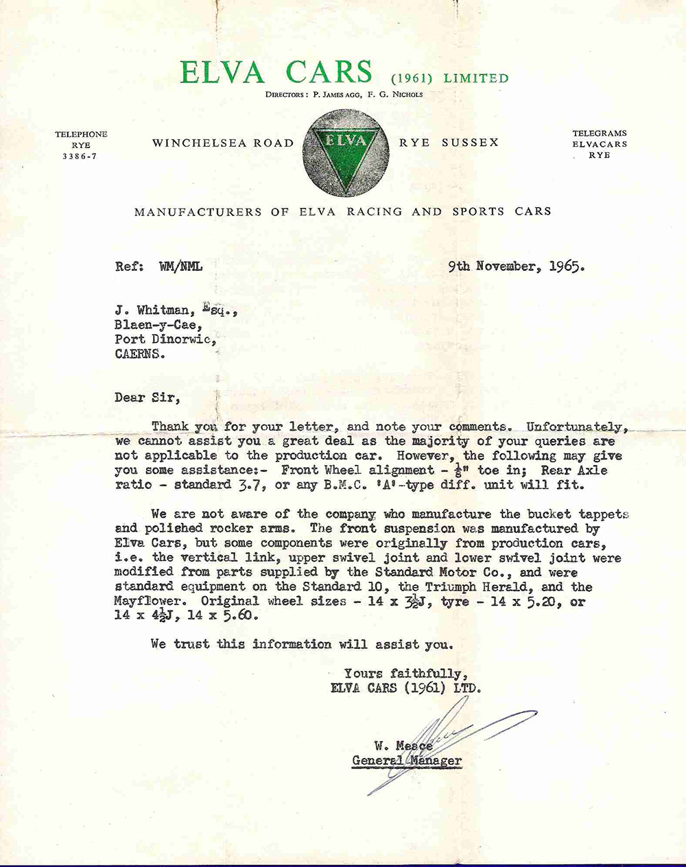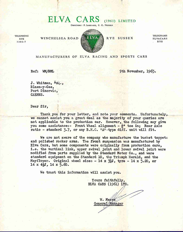 Introduction by Roger Dunbar ... There are many delights associated with the fabulous Goodwood Revival, one being the opportunity to meet with Elva people, often previous owners who enquire of the whereabouts of an old friend. In 2008 I chatted with Jerry Whitman about his ex. Malcolm Wayne Courier, and in July this year our paths crossed again in the pretty village of Burpham near Arundel. Just across the river from the imposing castle, stands the village pub, named the George & Dragon, and the landlord had arranged for a gathering of local ‘classics’ on the cricket field, so the ‘yellow peril’ Courier was called into action. After checking out the real ales on offer, including some bottles of Robbie’s Red (a hard job but someone has to do it), I returned to the Courier to find Jerry enthusing about the car. We again discussed his previous ownership of ‘9330 UG’ and thankfully Jerry was kind enough to put his fond memories into written words. Enjoy. You will soon learn from his story that Jerry is not only a talented engineer but a very likeable and interesting guy too.