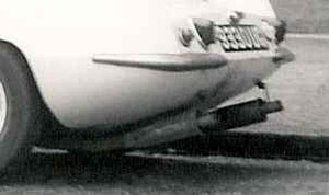 One very wet night in November ’65, upset over a girl, I was driving too fast with the spare Michelin X on and the car aquaplaned through one of the fast bends, but I checked it easily so later on floored the throttle in third and crunched off a wall on opposite lock. It was a classic bad car, bad driver, bad weather incident. I wasn’t far from ByC so I collected up the bits of fibreglass and was sufficiently unfazed to volunteer to ferry Roger and his girl Evelyn back to Bangor in the pouring rain (no weather for a bike), changing gear right-handed as it was so cramped! There was no chassis damage but the bodywork was missing from the air intake to the wheel arch on the driver’s side.